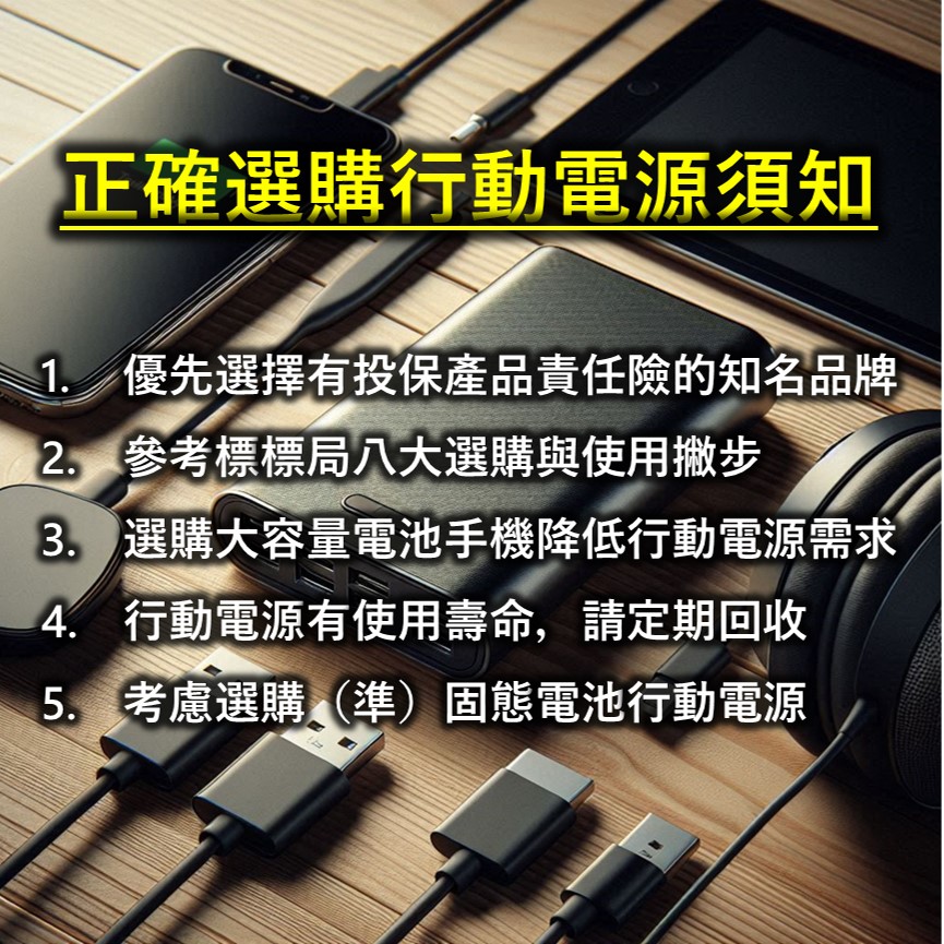 尤其是偏好使用多合一設計行動電源民眾,建議手上未過保產品請改用USB充電線充電取代插頭插電,用時間換取安心。若要換購,則建議安全保障較高的(準)固態電池行動電源。