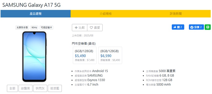 2025年8月新入榜的手機有三款,包含新入榜的三星A17 6/128GB入門5G手機與 三星Z Flip 7 12/512GB折疊機,以及重新入榜的三星S25 Plus 12/256GB。
