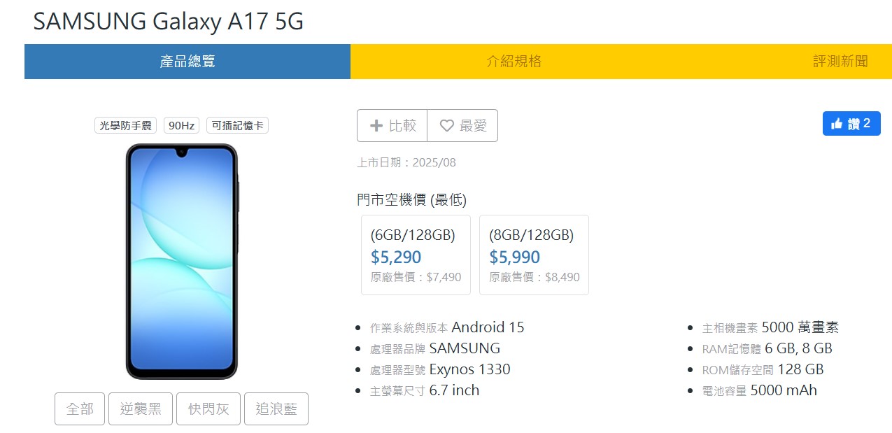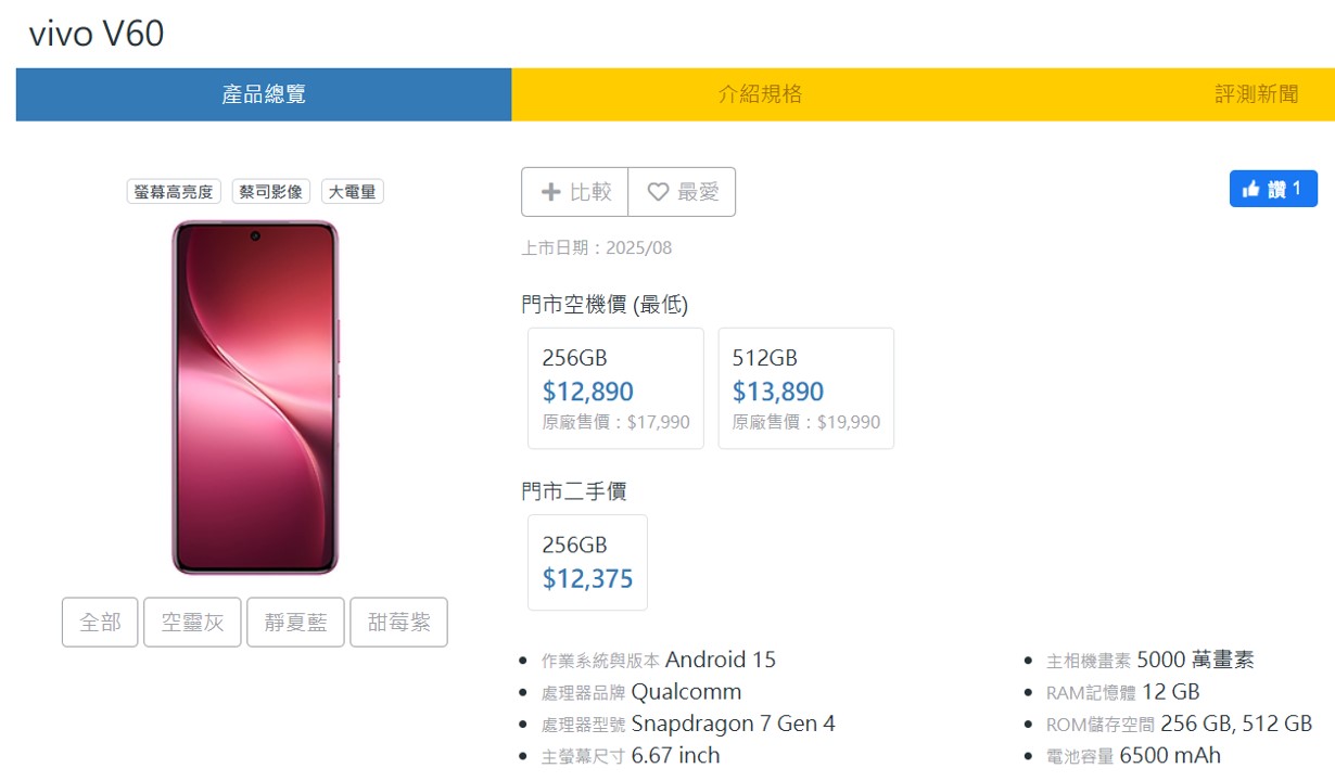 2025年9月新入榜的手機有8款,包含6款的iPhone 17系列新機、vivo V60 12/256GB及三星A17 6/128GB入門5G手機。