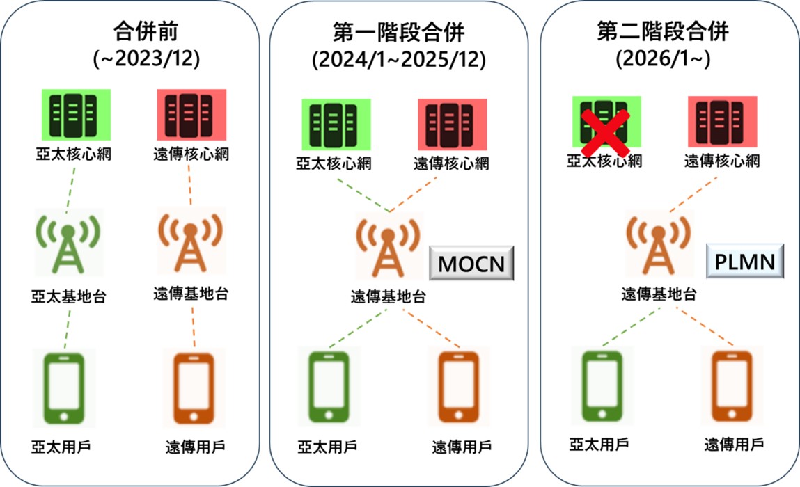 由於遠傳電信與原亞太電信使用的電信設備屬於不同廠牌,所以依照遠傳亞太合併計畫書規劃,遠傳電信預定將於2025年年底前第二階段完成基地台與核心網整併完成。第二階段整併後,遠傳電信可以將亞太電信舊有基地台以及亞太電信原本的核心網廢除,達到節能減碳降低成本目的以及提供原亞太電信完整使用遠傳電信網路服務,不再受限只能優先使用700MHz 頻段的5MHz可憐頻寬。