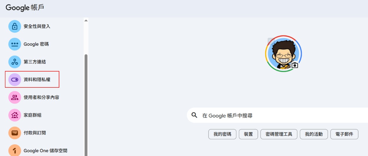 A.至「個人Google帳號」(google.com)。