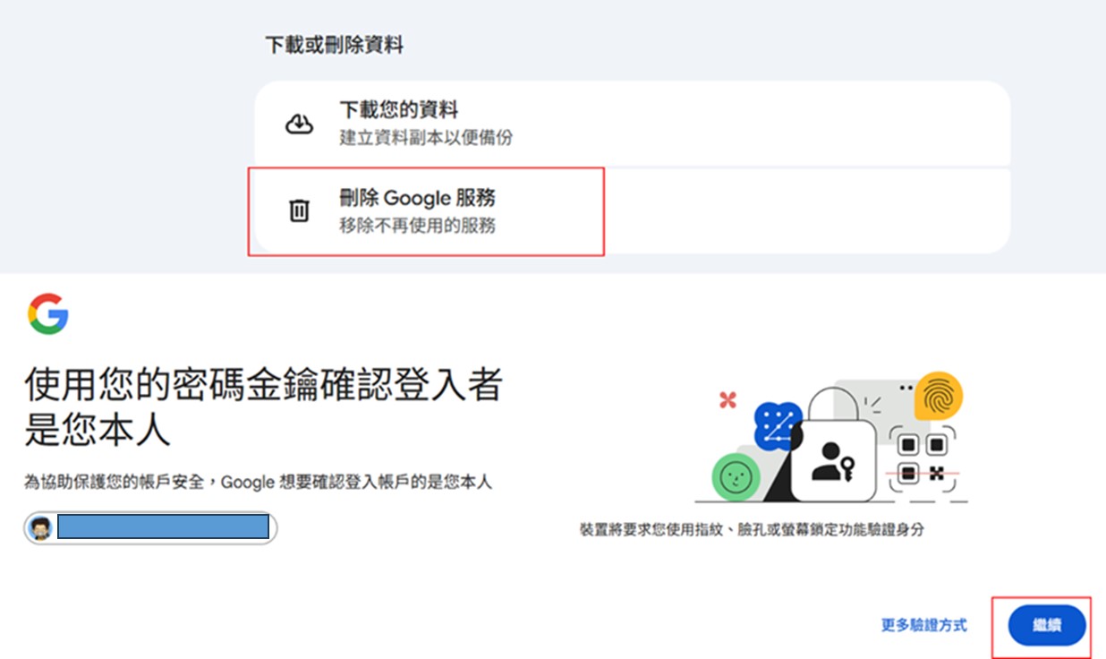 C.選擇「刪除Google 服務」,並進行密碼金鑰相關確認。