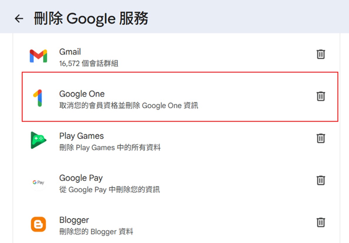 D.刪除已經付費訂閱的Google服務(如Google One..)。