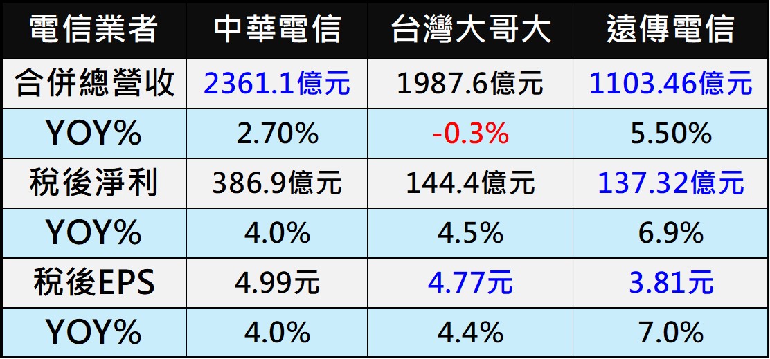 以下是電信三雄自結公告的2025年營運表現: