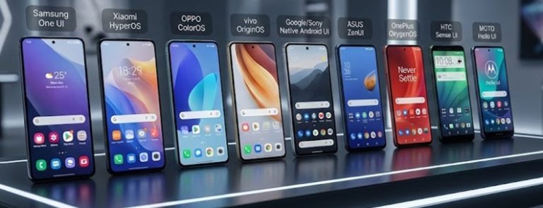 Android 作業系統屬於開放系統,各手機品牌為了凸顯自家產品特色,都會在基於Android原本版本下開發屬於自己的 UI 與功能設計,較知名的Android手機使用者介面(UI)有 Samsung One UI、小米HyperOS 、OPPO ColorOS 、vivo OriginOS、Google 原生Android UI、ASUS ZenUI、MOTO Hello UI 、HTC Sense UI..等等。