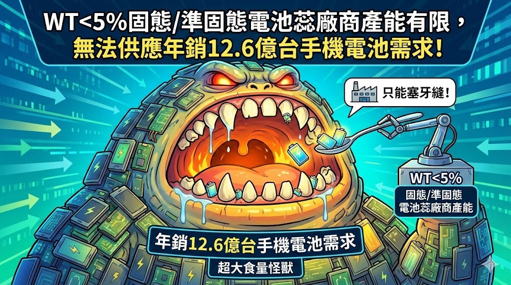 據了解目前能夠生產液態比低於5%的【固態/準固態電池】的電池蕊只有三家,且這些廠商都非大廠,過去產能只能提供給台灣與日本幾家新興的行動電源品牌商。由於產品熱銷,陸續有中國/香港/台灣更多行動電源廠商加入銷售,產能已捉襟見肘。IDC預估2025年全球智慧型手機市場全年出貨量約12.6億支,生產【固態/準固態電池蕊】廠商的產能連供應手機大廠鋰電池需求的零頭都難以符合,自然不會成為手機大廠的供應鏈選擇!