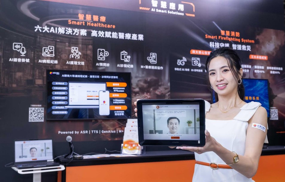 台灣大哥在「智慧醫療」應用上,聚焦三大核心AI能力,包含支援中、英、台、客混合語音辨識(ASR)與文字轉語音(TTS)的技術,以及以大型語言模型為基礎的GenAIus智慧大腦。基於這些技術,台灣大哥大於醫療場域發展出五大AI應用:「AI 預問診」讓病患在看診前透過與AI助理互動描述症狀,自動彙整資訊至醫療系統,協助醫師快速掌握病況;「AI 語音掛號」則讓病患以自然語言完成掛號,免除傳統按鍵流程的繁瑣;「AI 聽寫大哥」提供超過15種摘要範本,讓「AI 病程紀錄」、「AI 護理交班」與「AI 診間紀錄」皆能快速轉寫並彙整,大幅縮短醫護人員的作業時間。此外,台灣大深耕醫療通訊領域,旗下M+企業即時通訊串聯醫療資訊系統,實現醫囑雙向即時回饋,加速醫療決策並自動化更新病歷。