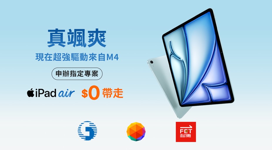 a.全新iPad Air $0起輕鬆帶走,申辦就享AI、影音、遊戲、資安、智慧出行加值服務一次擁有!