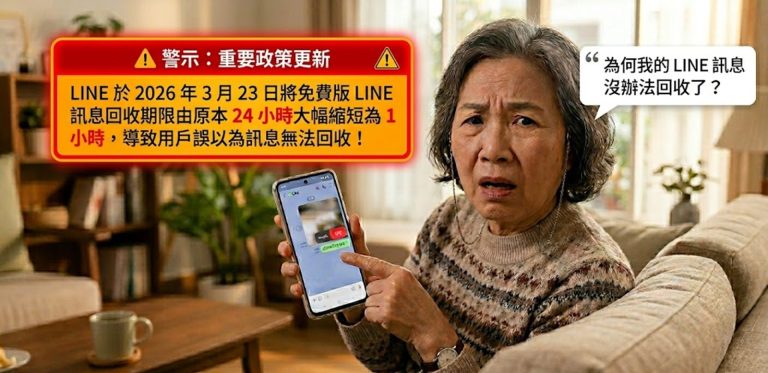 換言之,自2026年3月23日起,一般免費用戶的訊息收回期限縮短為傳送後 1小時內。付費訂閱「LINE Premium」的用戶則可延長至 7天內 收回,並享有「無痕收回」功能(未讀收回不留紀錄);社群則維持24小時。
