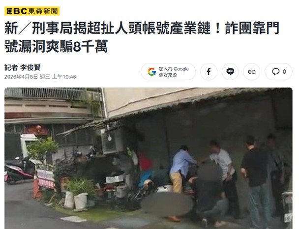 日前刑事警察局中部打擊犯罪中心宣布破獲詹男為首的不法集團以更換手機門號成功取得8226個不同的手機號碼並綁定2642個LINE人頭帳號,初步清查財損金額超過新臺幣8000萬元,日前地檢署已偵結起訴。