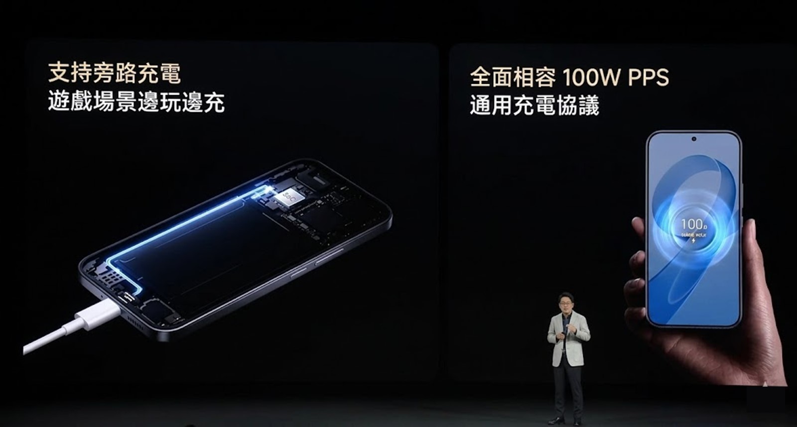 「全局旁路充電2.0」的運用將不僅限於遊戲,在直播、視訊通話等高功耗場景也能啟用,實現系統自動偵測並優化充電模式,讓即使不是在高負載遊戲下也能更智慧地保護電池,讓適用性可以更廣。
